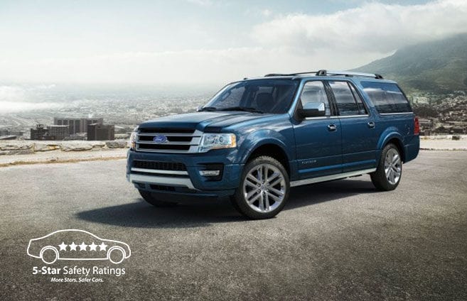 | Full-size SUV capability along with NHTSA's highest Government 5-Star Safety Rating. You'd expect the flagship of Ford SUVs to be top-rated in safety. And it is. The 2017 Expedition was awarded the highest overall 5-Star Crash Safety Rating from the National Highway Traffic Safety Administration (NHTSA).* Expedition comes with dual-stage front airbags and side-impact airbags, as well as three-point safety belts for all eight seating positions. Standard also is the Safety Canopy® System with three-row side-curtain airbags and rollover sensor. And Expedition features AdvanceTrac® with RSC® (Roll Stability Control™) and Trailer Sway Control to help you avoid an accident in the first place. *Government 5-Star Safety Ratings are part of the National Highway Traffic Safety Administration's (NHTSA's) New Car Assessment Program (www.safercar.gov). | |