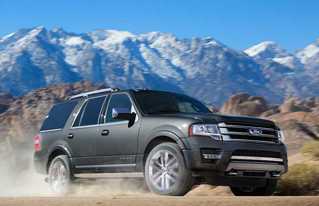 | Expedition Platinum The Expedition takes its place on the road in a most compelling way. And when it comes to style and comfort, the Platinum is top-of-the-line. Among the standard features are SYNC® 3, voice-activated touchscreen Navigation System, BLIS® (Blind Spot Information System) with Cross-Traffic Alert, leather trim, rain-sensing front wipers, and Continuously Controlled Damping System with 22-inch polished aluminum wheels. |