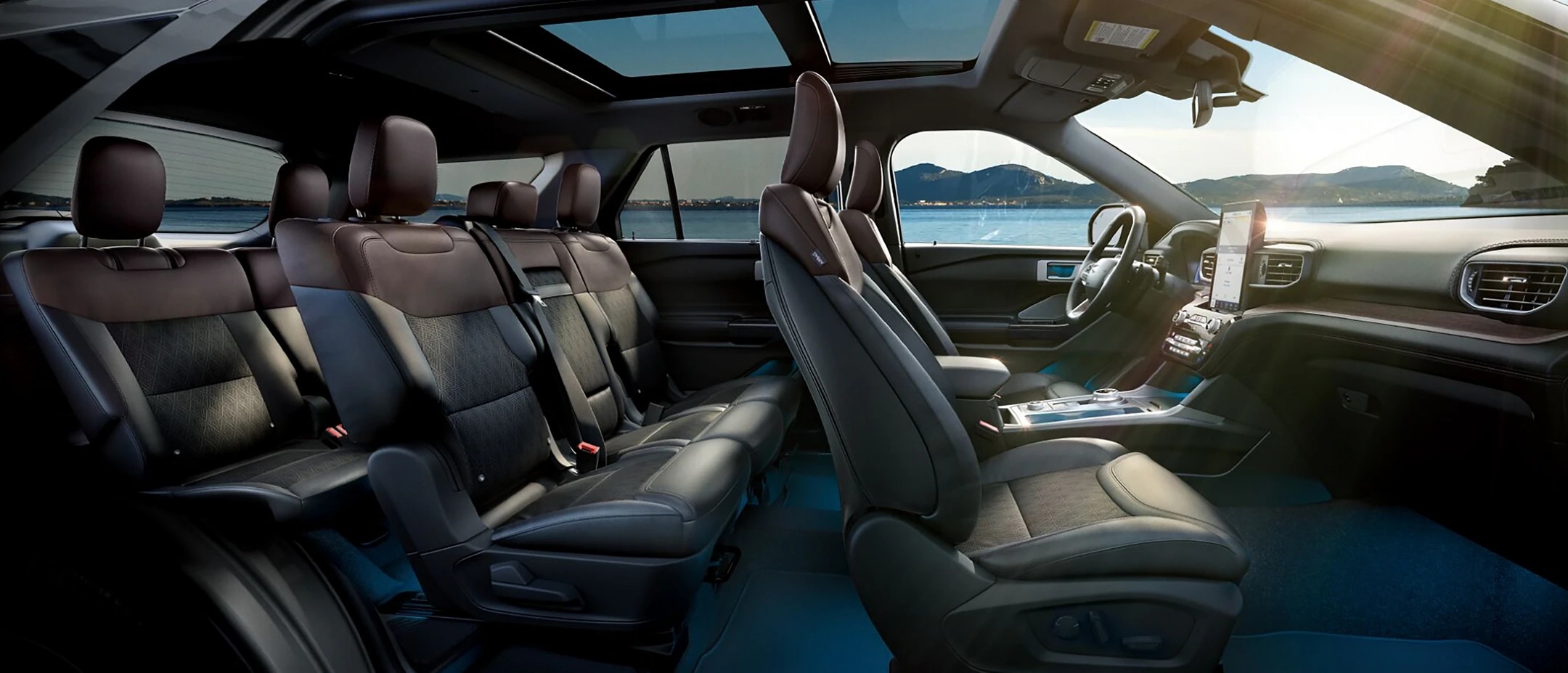 The Ford Explorer offers three rows of seating, making it easy to seat up to seven. Its available premium seating material and well-honed interior are designed to give you more of what you love. The Explorer features our available Adaptive LED Headlights, giving you a clearer view of the road. Its athletic and bold style stands out on the road, letting you hold your head high no matter where you roam.