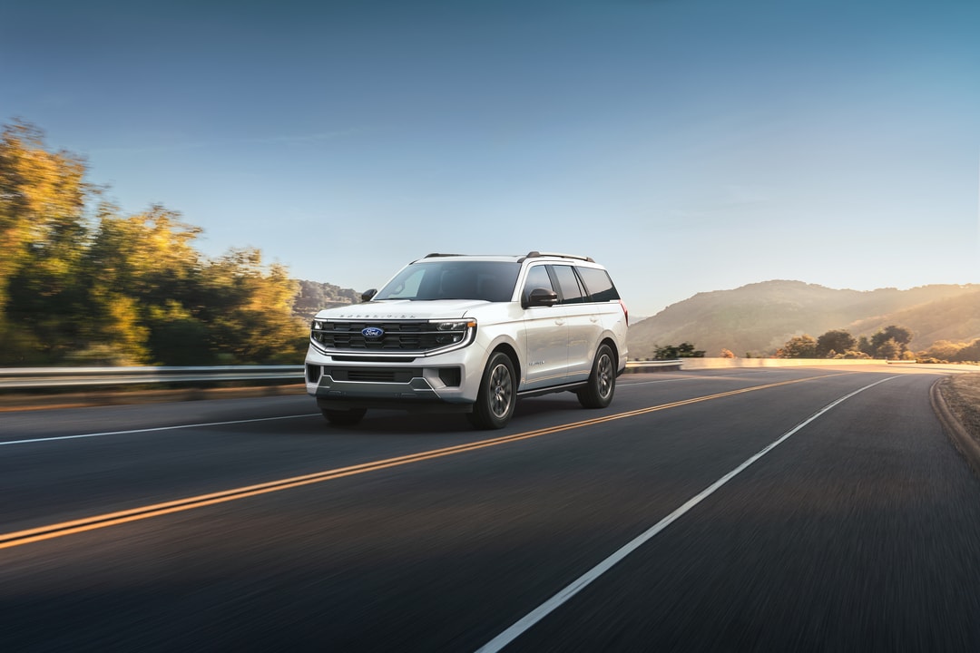 The Ford Expedition boasts a bold and sophisticated design that commands attention wherever you go. Its striking exterior features sleek lines, a prominent grille, and available power running boards for easy entry and exit. Inside, the spacious cabin offers seating for up to eight passengers, with available second-row power-folding captain's chairs and a power-folding third row for ultimate versatility. Premium materials, such as available heated and ventilated leather front seats, create a luxurious and inviting atmosphere.